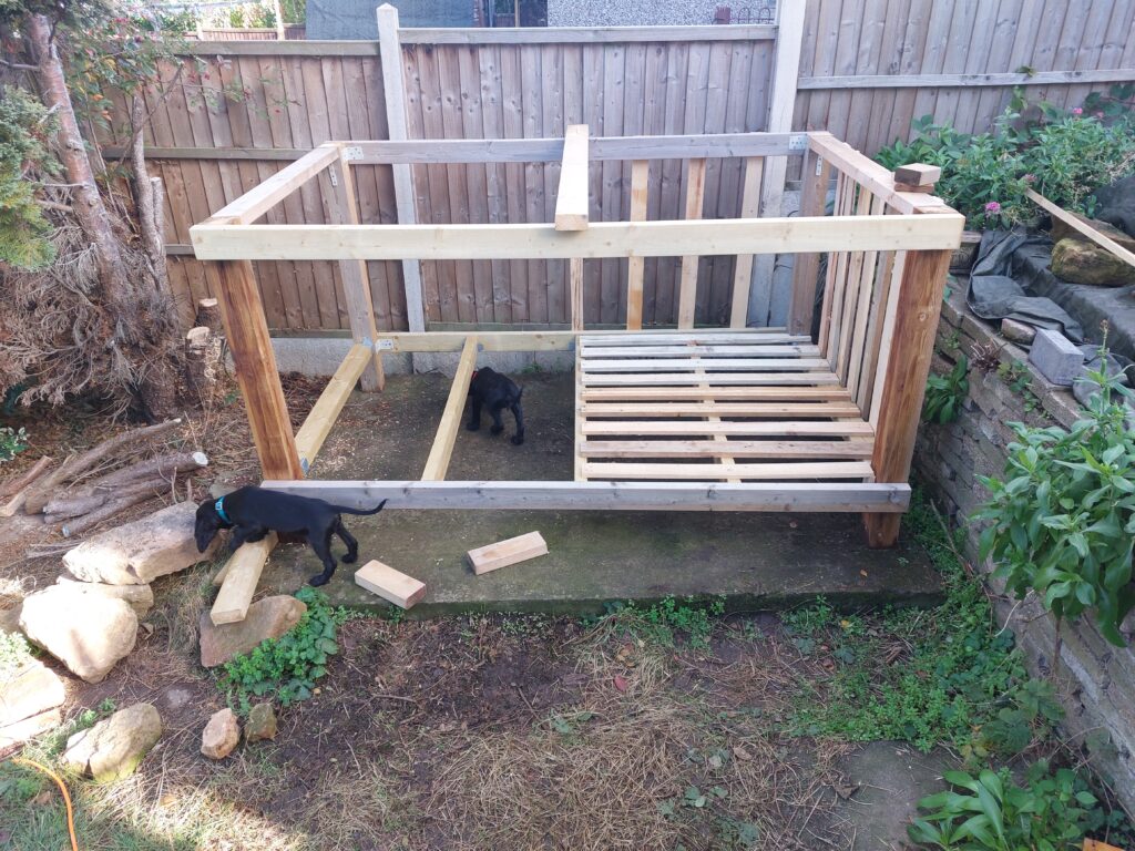 The build process took much longer than expected because I’m essentially on paternity leave. Babysitting two spaniel puppies and the two larger spanners is a near full-time job and, it’s a truth universally acknowledged that power tools and puppies do not go well together! Another factor for slower than expected build progress was that I constantly reviewed the design. And then the weather periodically screwed up my timescale.