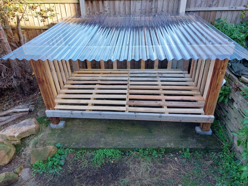 Long overdue, and by a significant number of years, I decided to provide the house with a log store. But instead of going to B&Q (or wherever) and spending a few hundred quid on something that is a bugger to put together, is a bit cheap and tatty, looks totally out of place (because we are so very classy), and will fall apart during the first hurricane-level storm that comes along, I have decided to design – and build – something just for us.