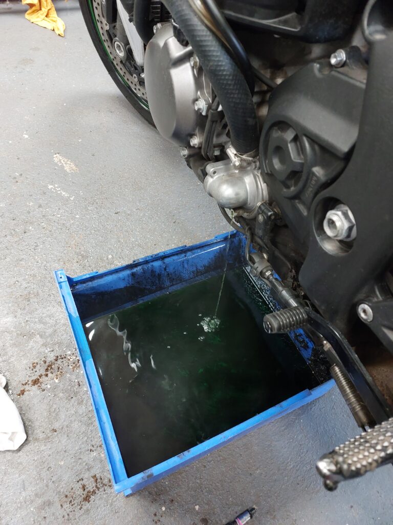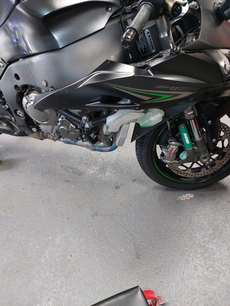 The cooling system header tank has been getting more discoloured as the year has worn on, so I found a mechanic who could ‘do the job’ as effectively and more cheaper than a Kawasaki dealer.
