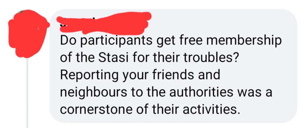 It’s a shame really. The task is needed. The lane through the village is used as a ratrun by folk who think the mandatory 30mph is optional. There are also several village residents who feel the same way (not to mention one resident who used intimidatory language towards the community speedwatch scheme volunteers, on the village FB page – see below). What a lovely man. I’m sure he’d defend his nastiness by saying it’s only “bantz” or “a bit of humour”, but I’ve made sure the rozzers have all of his details and those of his car, because we need to protect these volunteers from any and all kinds of intimidation.