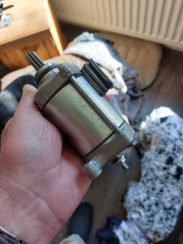 Now that, my friend, is the starter motor from a 2016 Kawasaki Ninja ZX10R. Only those bits on the outside? They’re supposed to be on the inside, glued to the casing. They are powerful magnets which, when current is put through the starter, become electromagnets and spin the spindle which, in turn starts the bike! Except they’ve become detached from their glue-points and turned the starter motor into a big old lump of metal which did the square root of nothing. But now we’re back on the road, so the two-wheeled world is a good place to be once again.