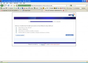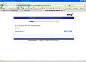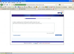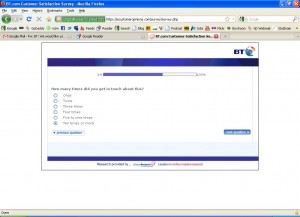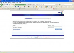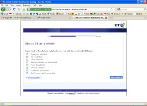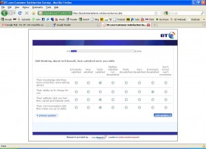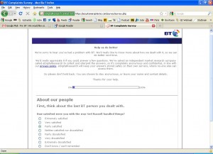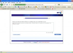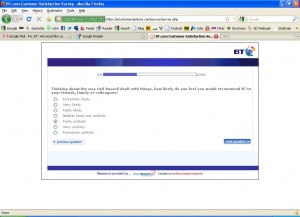 This is a nice gentle question that clearly says it’s about the last person who dealt with me.. It’s not about how BT as an organisation dealt with the problem. It’s just about the last guy I spoke with.