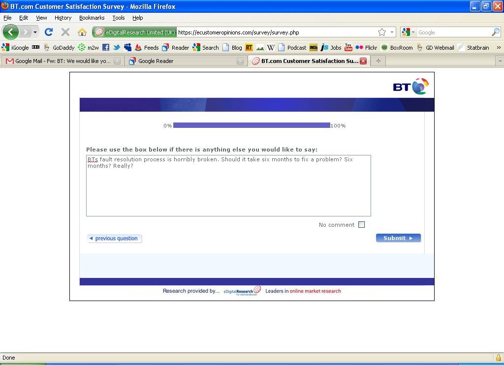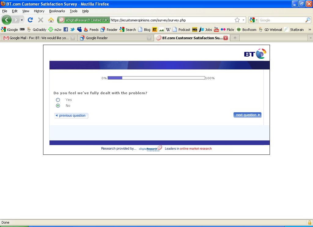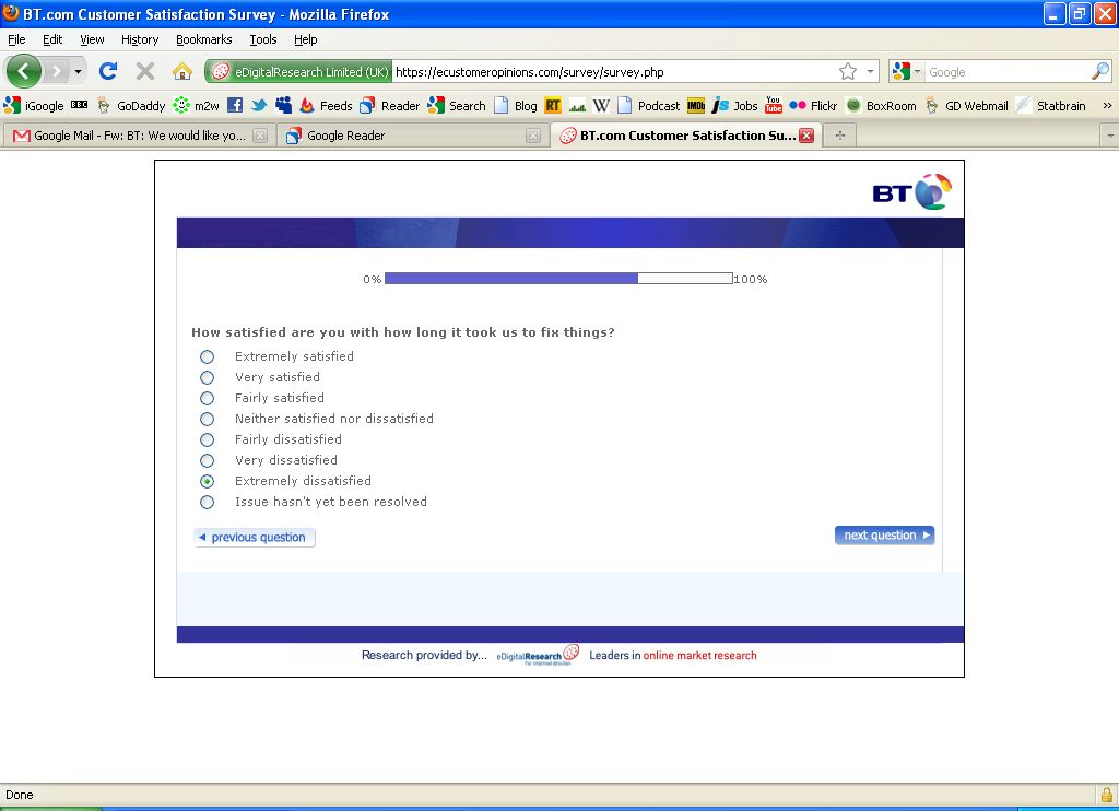 Anyway, as part of the fault-closing action, BT sends out a closing questionnaire.