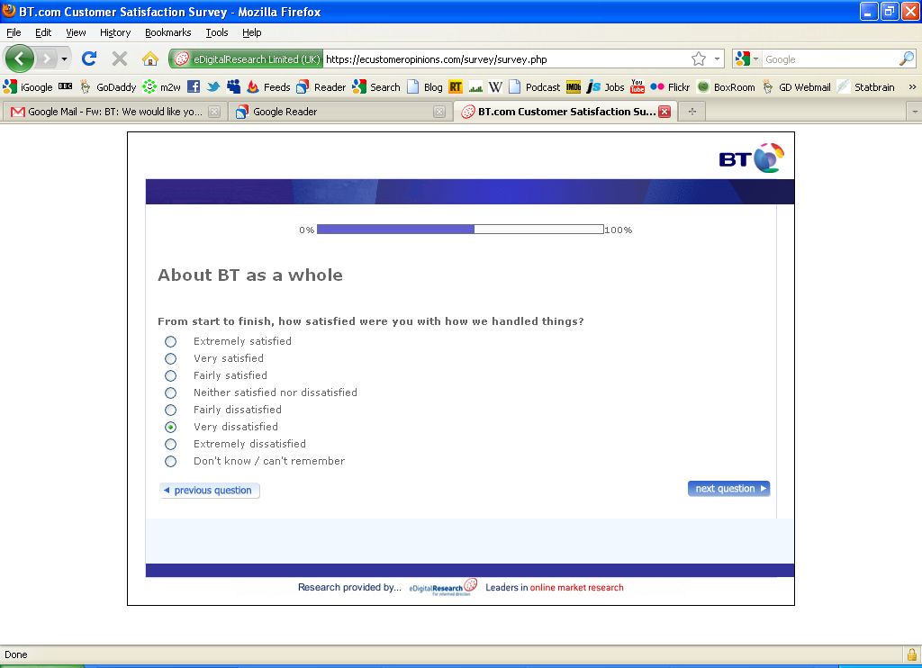 How did BT handle things? Maybe I’m being a little generous here by responding with ‘Very dissatisfied’?
