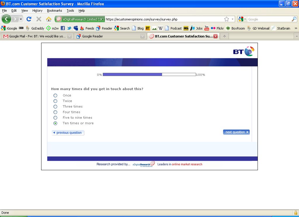 How many times did I get in touch with BT about this? And the radio button only goes up to ‘Ten times or more’? Hahahahaha!